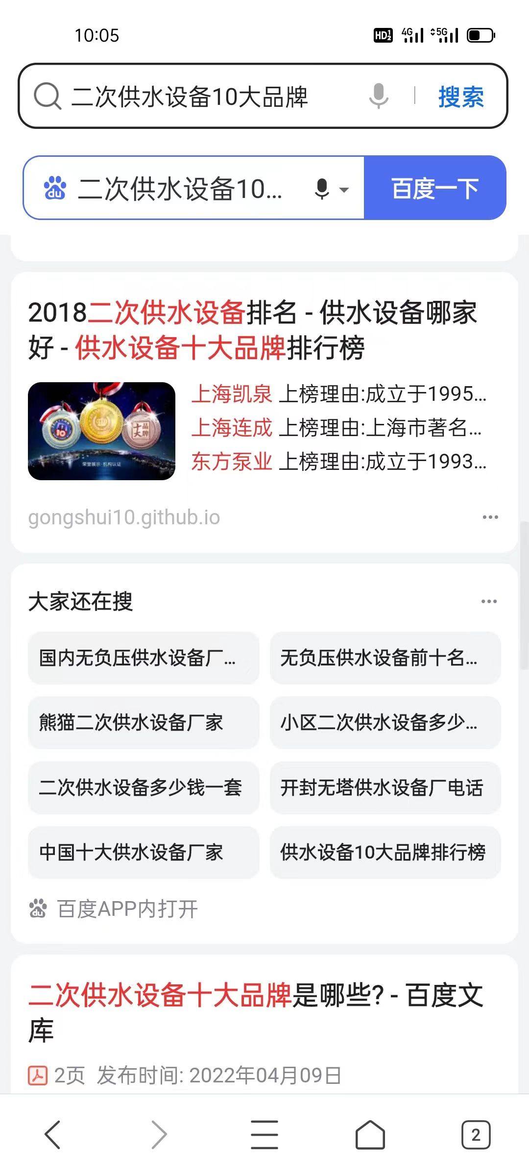 2018年品牌排行榜H5+SEO:供水设备10大品牌连续5年排名百度首页